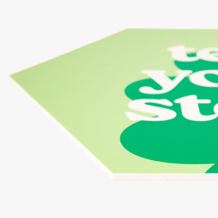 Hexagons zijn veelzijdige, zeshoekige panelen die je volledig personaliseert met jouw eigen ontwerp, foto of print. Door de unieke vorm zijn ze perfect om creatieve collages en decoratieve wandpresentaties mee te maken, zowel in kantoren als in woon- en commerciële ruimtes. Je kiest uit verschillende materialen zoals Forex, Dibond, Plexiglas of Multiplex, elk met een eigen uitstraling.