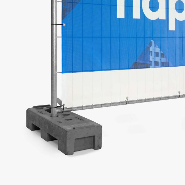 Montage is eenvoudig en snel: je bevestigt het doek met tiewraps of elastieken aan het bouwhek. Dankzij de ringen rondom blijft het doek strak gespannen en bestand tegen windbelasting.