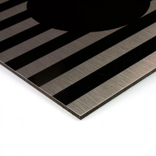 Dibond Butler Finish is een hoogwaardig aluminium composietpaneel met een opvallende geborstelde metalen toplaag die jouw ontwerp een luxe en industriële uitstraling geeft. Het lichte maar stevige sandwichmateriaal bestaat uit twee lagen aluminium met een kern van kunststof, waardoor het sterk en vormvast is, maar toch eenvoudig te verwerken en te monteren. De geborstelde afwerking blijft zichtbaar door de print heen en geeft jouw visuals extra karakter. Dit veelzijdige materiaal is geschikt voor zowel binnen- als buitengebruik.