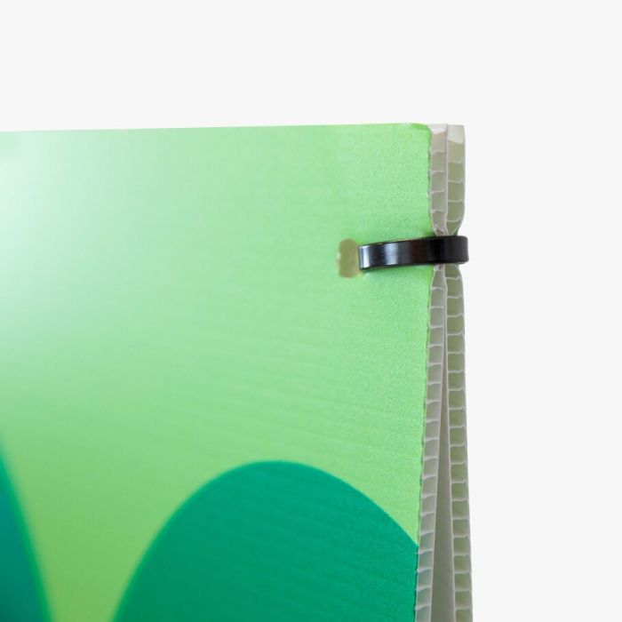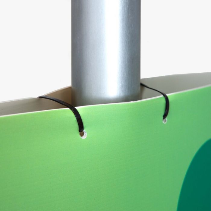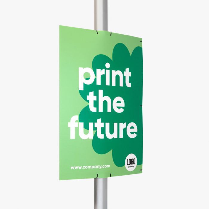 Op zoek naar een eenvoudige maar effectieve manier om jouw boodschap te tonen langs lantaarnpalen? Het lantaarnpaalbord is ideaal om een event, beurs of actie aan te kondigen. Dankzij het materiaal is de boodschap goed zichtbaar, zelfs bij daglicht en ’s avonds wanneer de paal wordt verlicht.De platen zijn stevig maar toch buigbaar dankzij de kanalen in het materiaal, waardoor ze gemakkelijk om een lantaarnpaal vouwen en zowel binnen als buiten toepasbaar zijn.